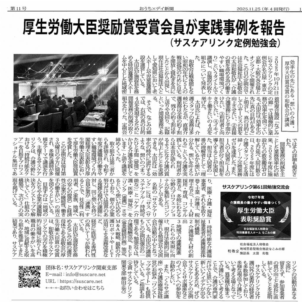 おうち×デイ新聞(2025年11月25日)に「なごみの郷施設長(太田和敬)」が掲載されました。